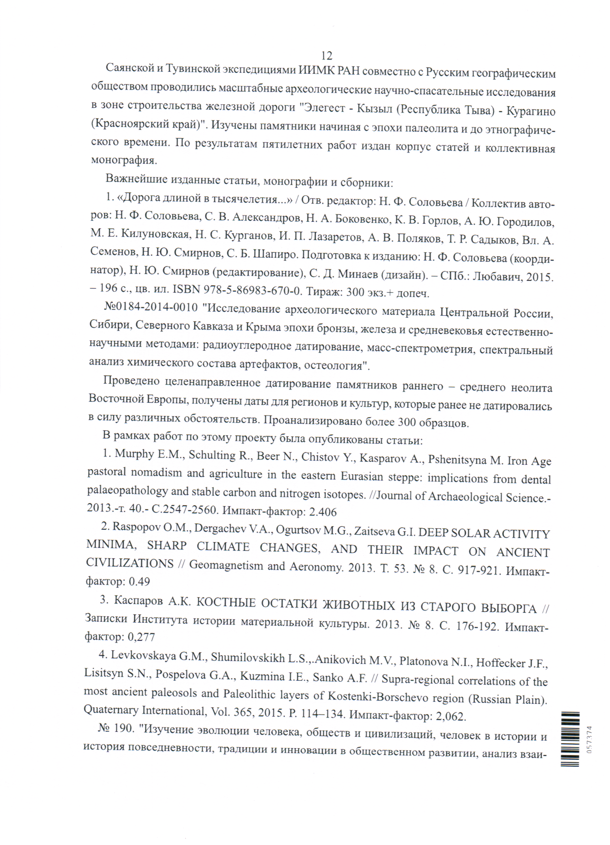 Опубликован Бюллетень Института истории материальной культуры РАН. [№] 15 (охранная археология)