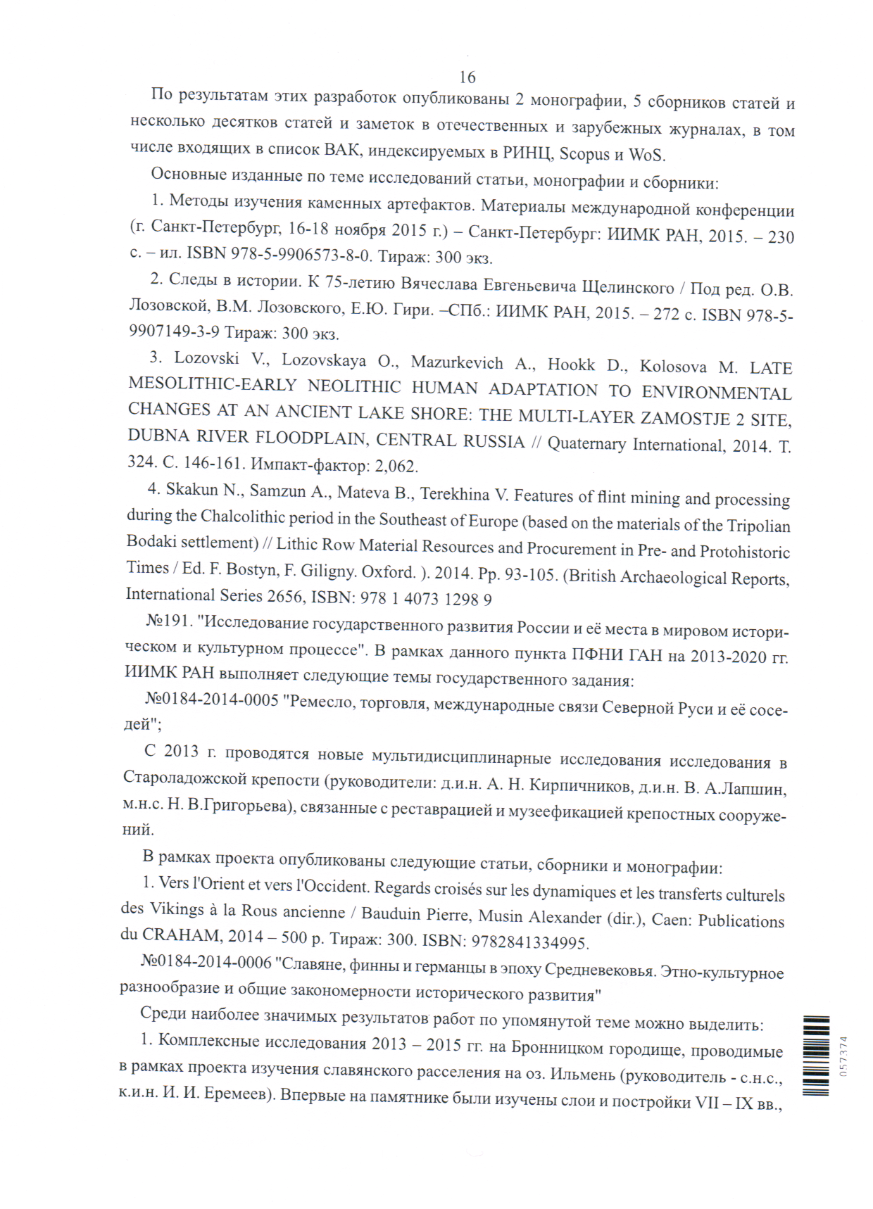 Опубликован Бюллетень Института истории материальной культуры РАН. [№] 15 (охранная археология)