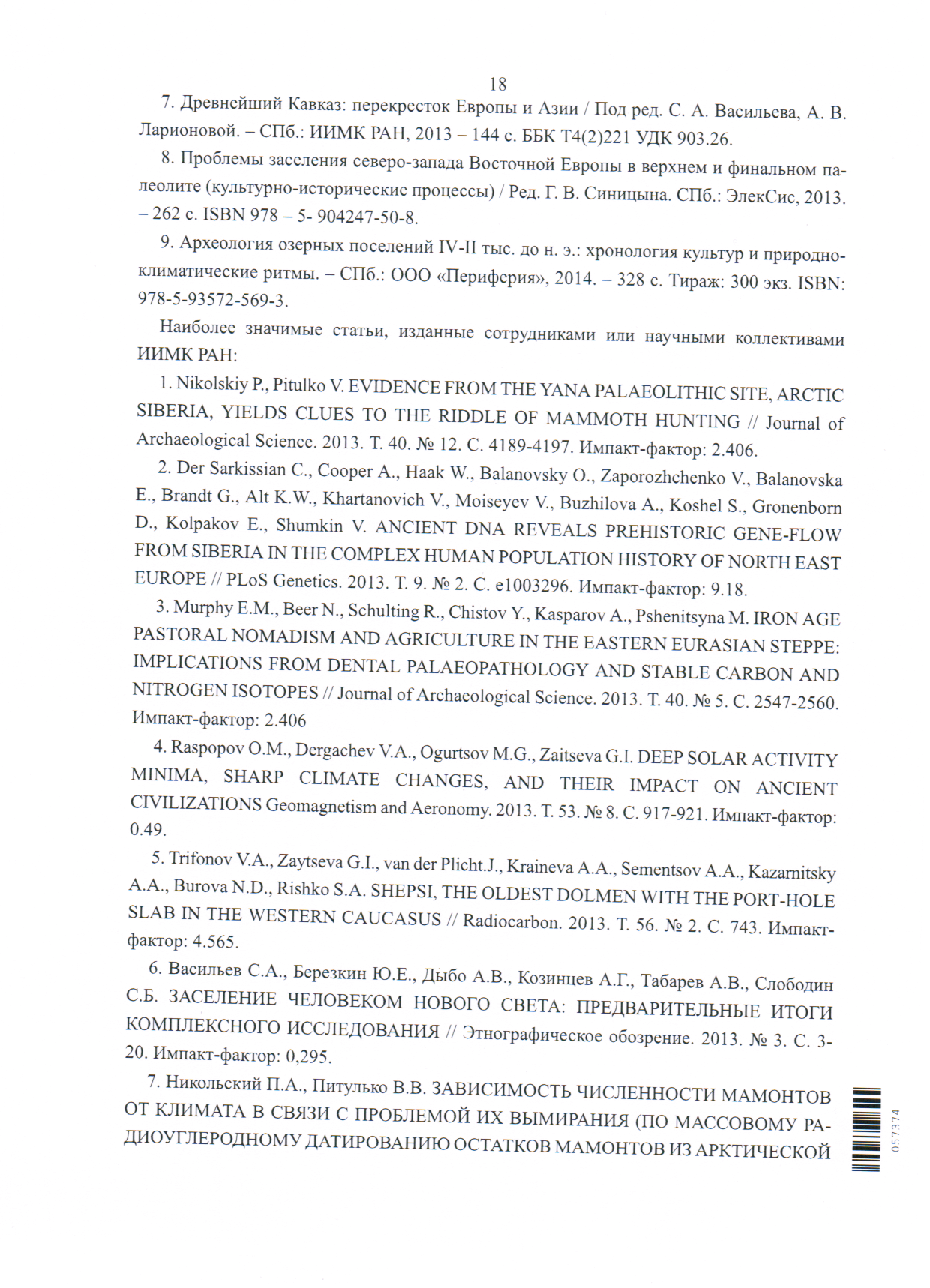 Опубликован Бюллетень Института истории материальной культуры РАН. [№] 15 (охранная археология)