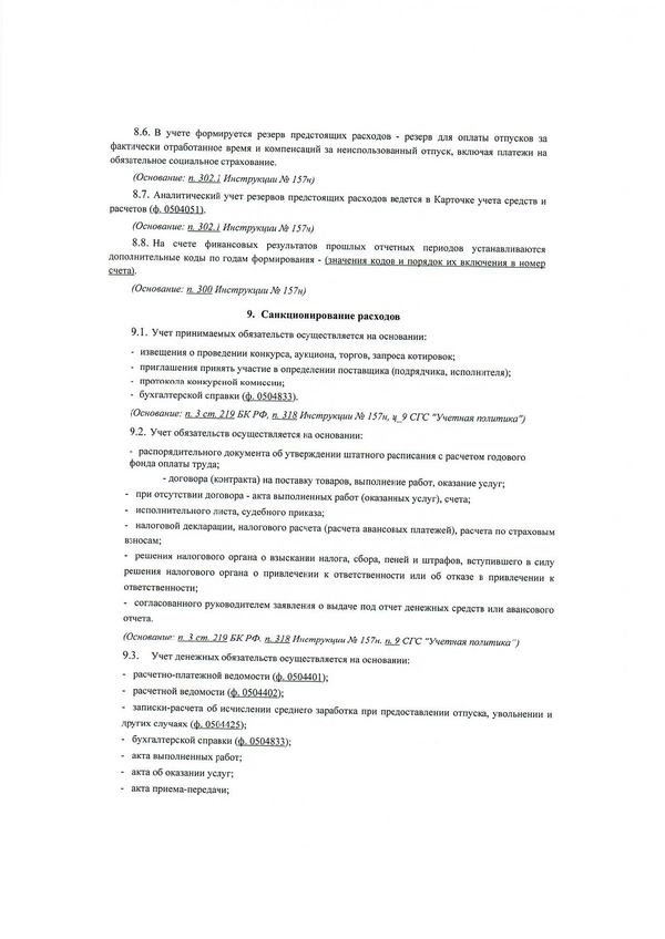 Учетная политика ИИМК РАН для целей бюджетного учета (2018 г.)