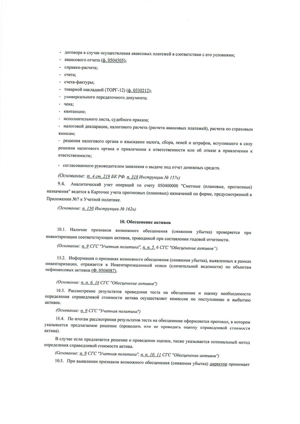 Учетная политика ИИМК РАН для целей бюджетного учета (2018 г.)
