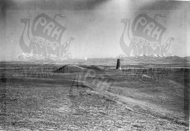 Киргизия. г. Токмак. Чуйская долина. Городище Бурана (в 5 км. от Ак-Пешина) - часть панорамы с башней "Бурана".