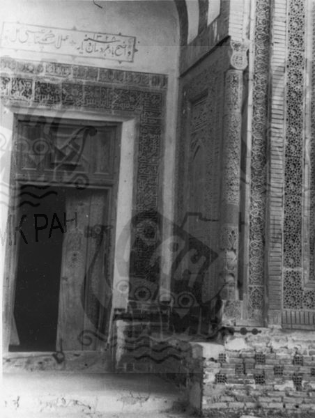 Таджикистан. Мазари-шериф. Пенджикенский район. Мавзолей Мухаммеда Башшара - правая щека портала.