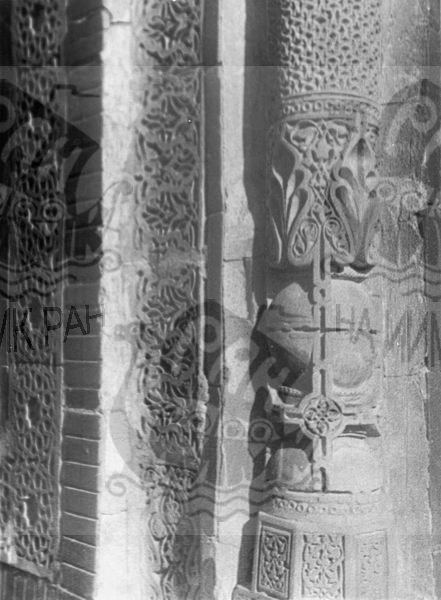Таджикистан. Мазари-шериф. Пенджикенский район. Мавзолей Мухаммеда Башшара - угловая колонна - нижняя часть.