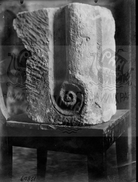 Холм губернский. Зеленый резной камень XIII в. Найден при раскопках на Соборной горе, 1912 г. Фотограф П. П. Покрышкин.