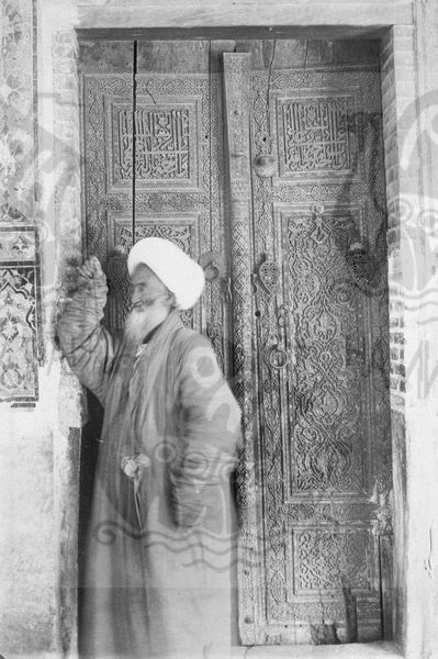 Самарканд. Узбекская ССР. Шахи-Зинда – мавзолей №4 восточной стороны (Кусам ибн Аббас) – дверь. Снимок фотографа-любителя Г. А. Панкратьева, 1894 г.