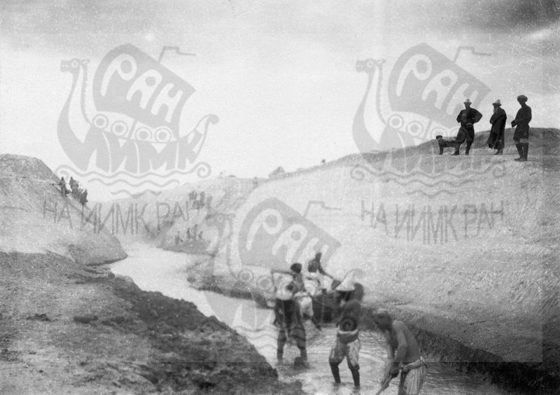 Туркестан. Голодная степь Сыр-Дарьинской области. Расчистка арыка от обвала.