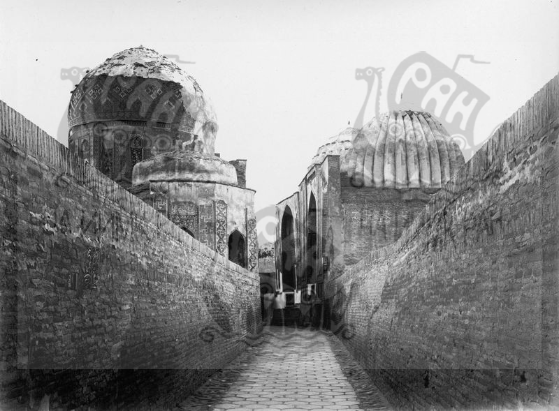 Шахи-Зиндэ: коридор - вид с севера на мавзолеи Туркан-Ала, Амир-Задэ, слева мавзолей Ширин-бики-Ала.