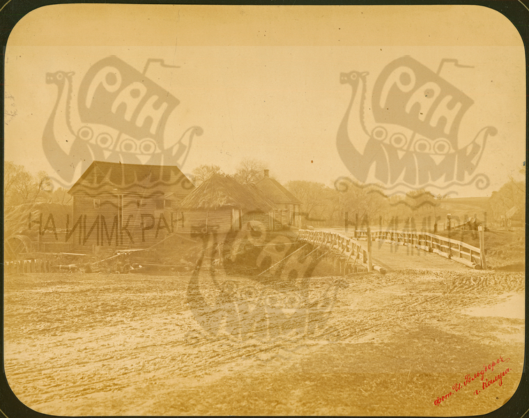 Q.164 - 18 Козельский уезд. Место границы уезда с мостом и бревенчатым домом - известное место для поднесения хлеба-соли. Снимок Гольдберга, май 1887 года.