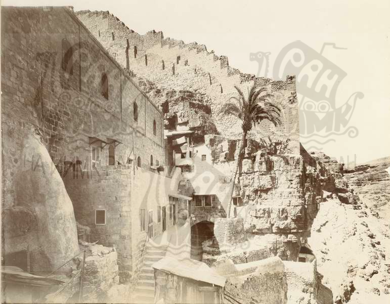 Иерусалим. Палестина. Монастырь св. Саввы: внутренний вид - двор и старая пальма.