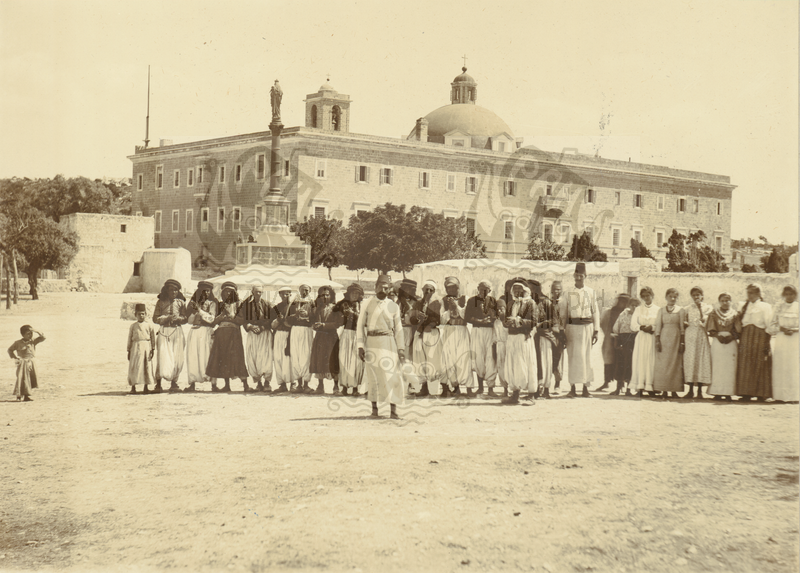 Палестина. Вид площади с монастырем и триумфальной колонной.
