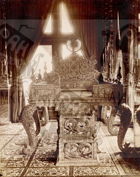 Тегеран. Персия. Дворец Шаха - "Павлиний" трон Шах-Аббаса, украшенный золотом и камнями. Снимок Л. Рогозина.