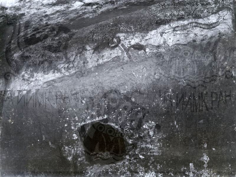 Керчь. «Двойной» склеп 1873 г. Фрагмент росписи простенка западной стены первой комнаты. Голова воина. |