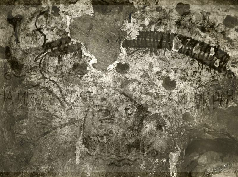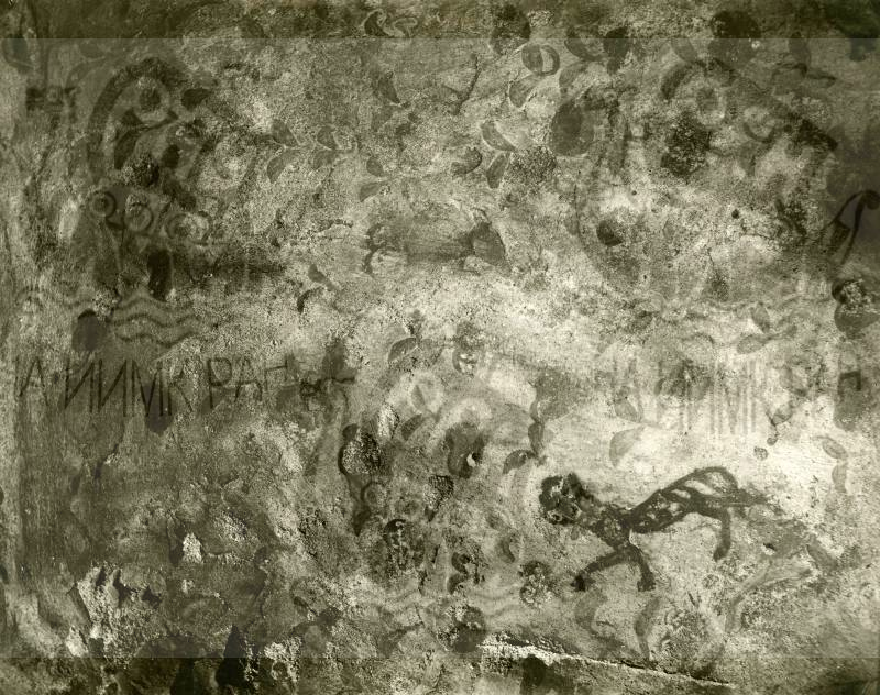 «Двойной» склеп 1873 г. Деталь росписи правой боковой стены второй комнаты. Фото бр. Резниковых, 1911 г. |