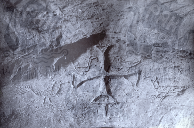 Христианская катакомба 1912 г. Изображение, высеченное в скале над входом – крест и птицы.