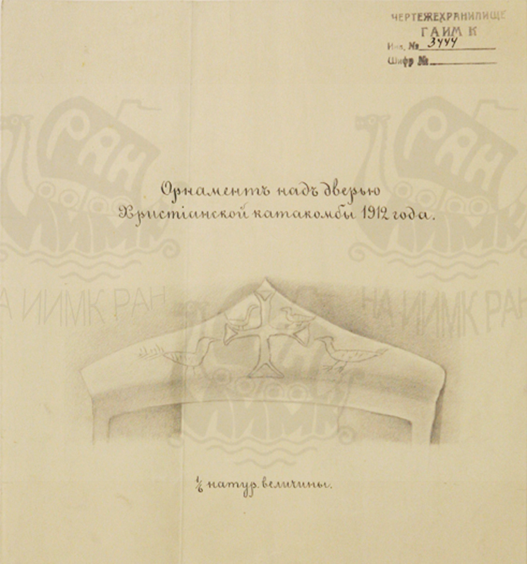 Керчь. Христианская катакомба 1912 г. Орнамент над дверью. Бумага, карандаш.