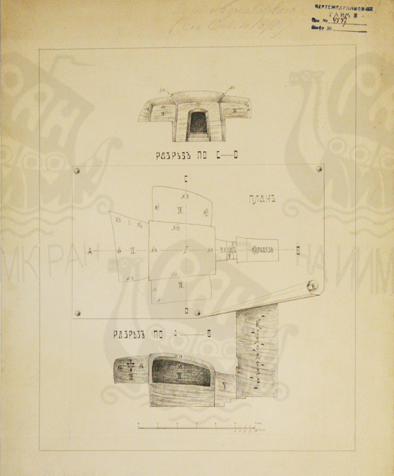 План и разрезы христианской катакомбы, открытой Ю. А. Кулаковским в 1890 г.