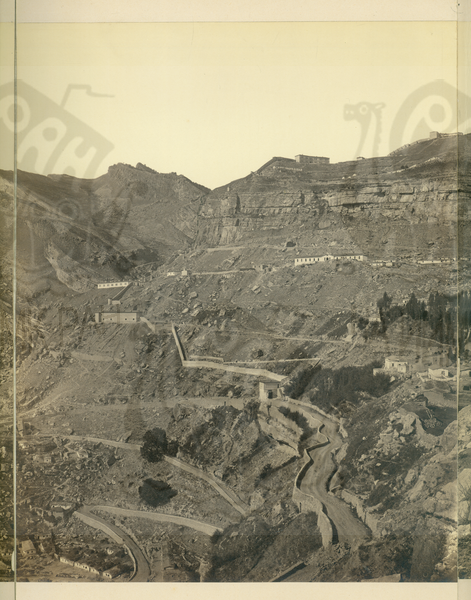 Панорамный вид Гуниба с артиллерийского бугра близ церкви. Дагестан (панорама из 6 кадров). Кадр 1.