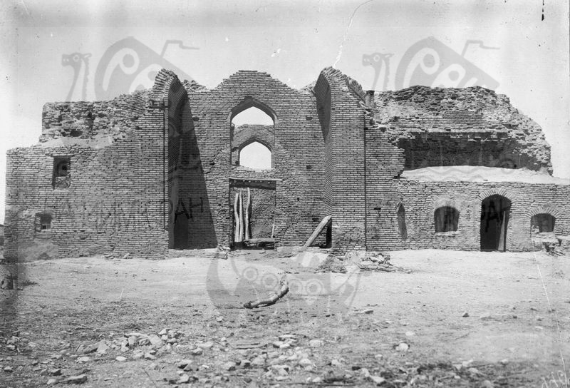 Сыгнак. Казахстан. Здание к югу от южной стены крепости – общий вид развалин портала с Юга. Снимок А. Ю. Якубовского, 1927 г.