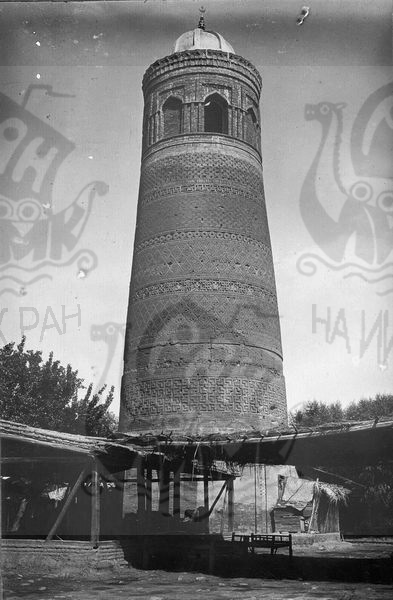 Куня-Ургенч. Южный мавзолей 582 г. : минарет – общий вид. Снимок А. Ю. Якубовского, 1928 г.