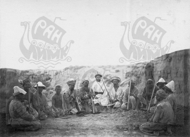 Туркестан. Голодная степь Сыр-Дарьинской области. Обед (худай) рабочих на кетменях.