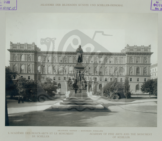 Здание Академии Художеств и памятник Шиллеру, общий вид, архитектор Хансен. Скульптор Шиллинг.