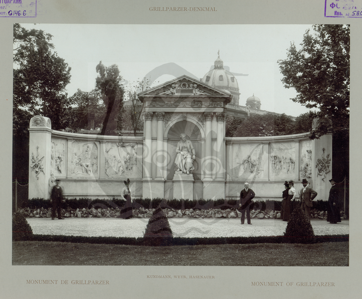 Памятник поэту Кундману в народном саду, общий вид, в центре фигура поэта, справа и слева рельефы на темы его стихов.