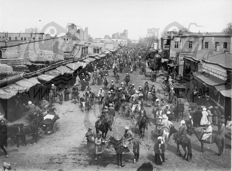 Самарканд. Улица к Чаар-су: общий вид от Чаар-су к Биби-Ханым, слева развалины Биби Ханым.