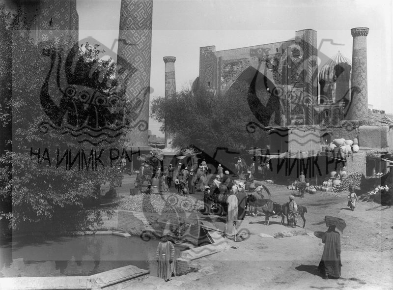 Самарканд. Медресе Шир-Дар: вид лицевого фасада от Хауза.