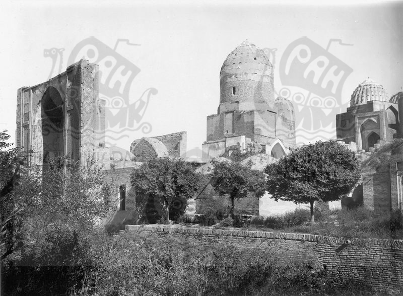 Шахи Зиндэ: главный вход и нижняя группа мавзолеев - вид с ЮВ.