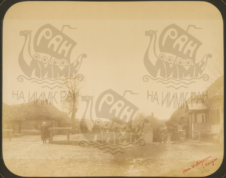 Q.164 - 17 д.Стенино близ г.Козельск. Калужская губерния. Вид улицы и домов в начале деревни - известное место для поднесения хлеба-соли.Снимок Гольдберга, май 1887 года.