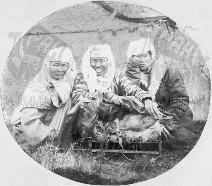 Семипалатинская область. Типы киргизов - киргизские женщины возле люльки с ребенком.
