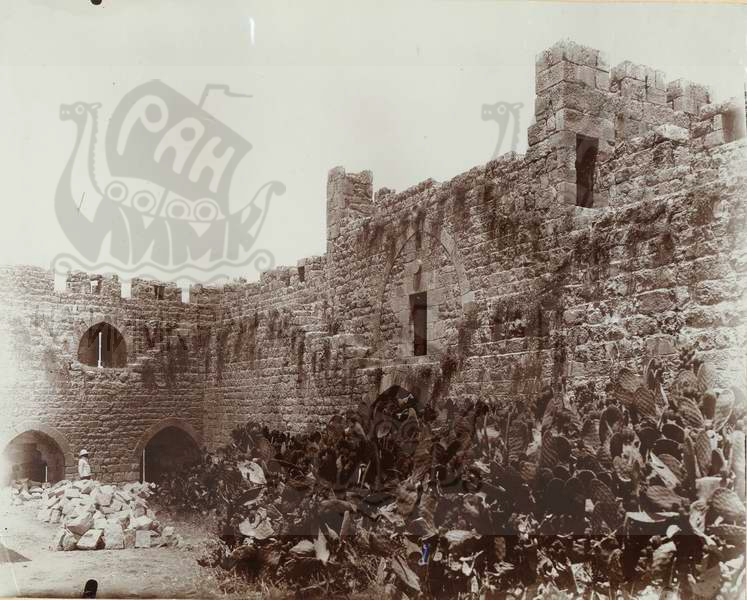 Иерусалим. Палестина. Древняя стена, вид изнутри с нишами и бойницами.