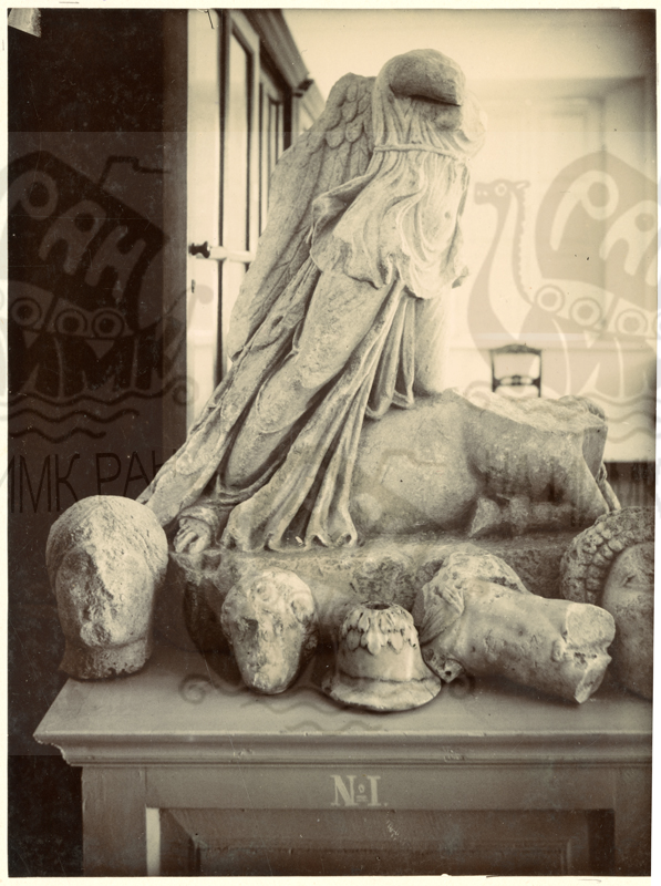 Керченский Музей Древностей. Статуя Ники, закалывающей быка, и фрагменты скульптур. Снимок из поездки Я.И. Смирнова 1889 г. в Крым и на Кавказ
