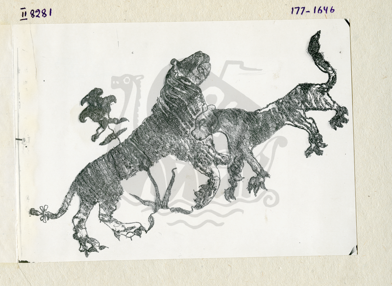 Ани (1908г.). Вышивка золотом из детского погребения XII в. Цветниковом ущелье, тигр и барс.
