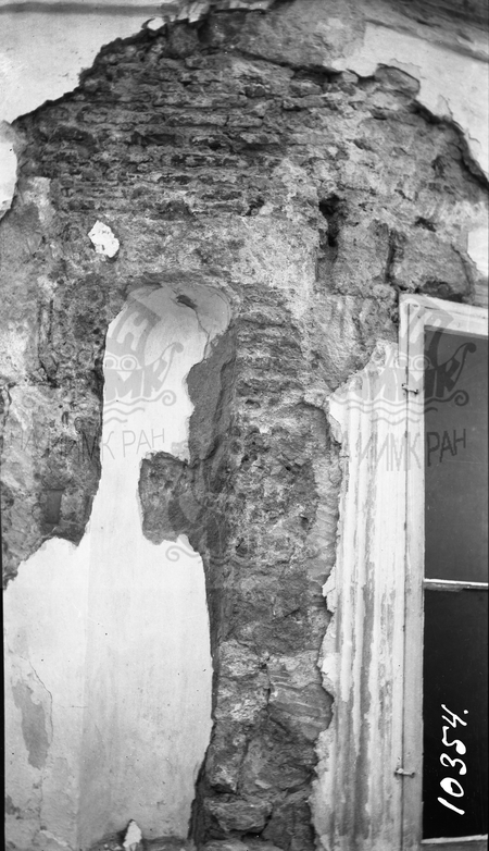 Керчь. Таврическая губ. Поездка П. П. Покрышкина 1909 года для осмотра церкви Иоанна Предтечи IX-X в.: деталь квадратной стены под куполом барабана с обнаруженной старой кладкой. Вид с ЮЗ.