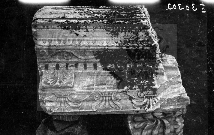 Керчь. Таврическая губ. Поездка П. П. Покрышкина 1909 года для осмотра церкви Иоанна Предтечи IX-X в.: фрагмент карниза с рельефным орнаментом.