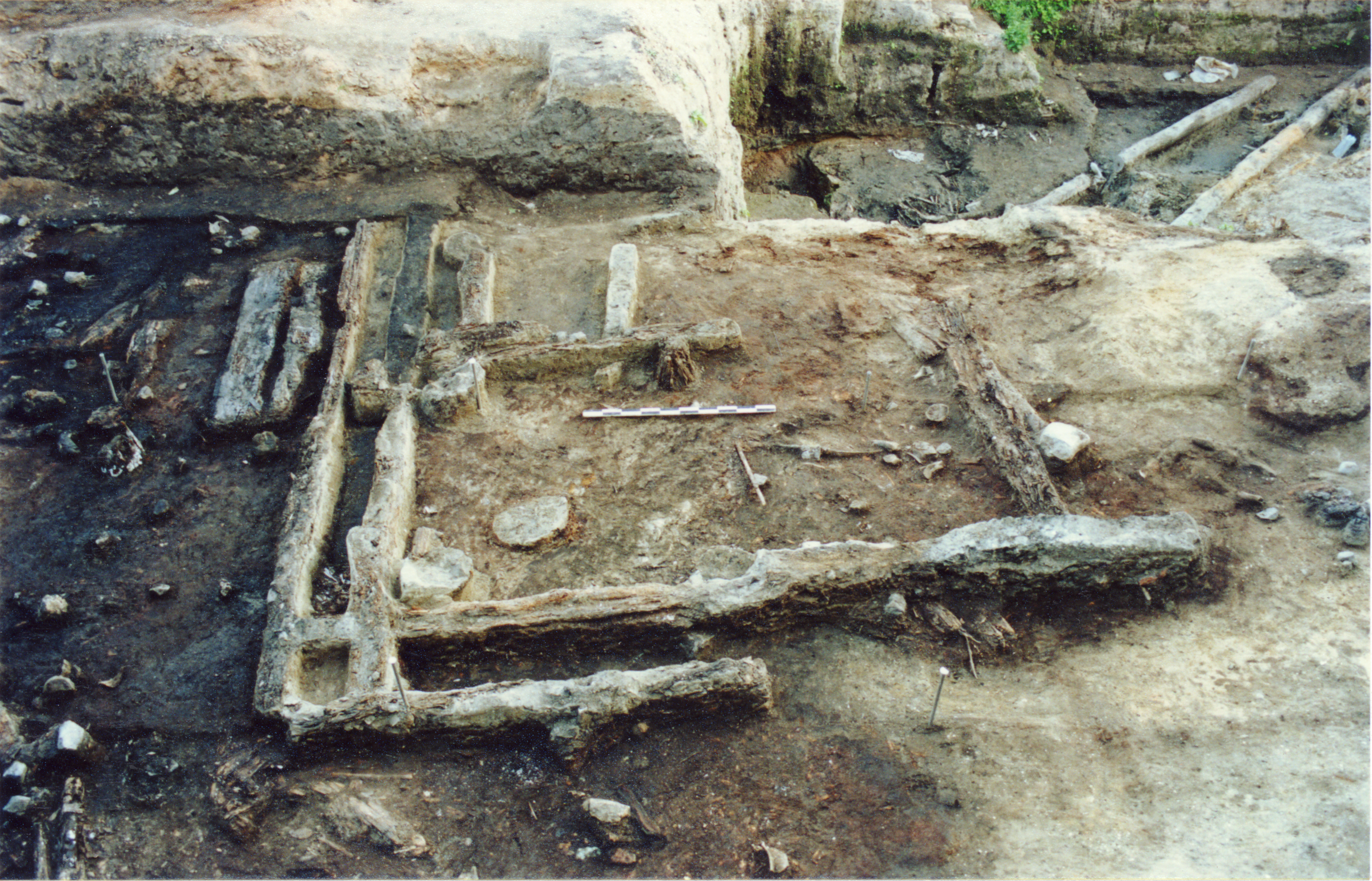 Расчистка дубовых укреплений в мысовой части Городища, 2002 г.