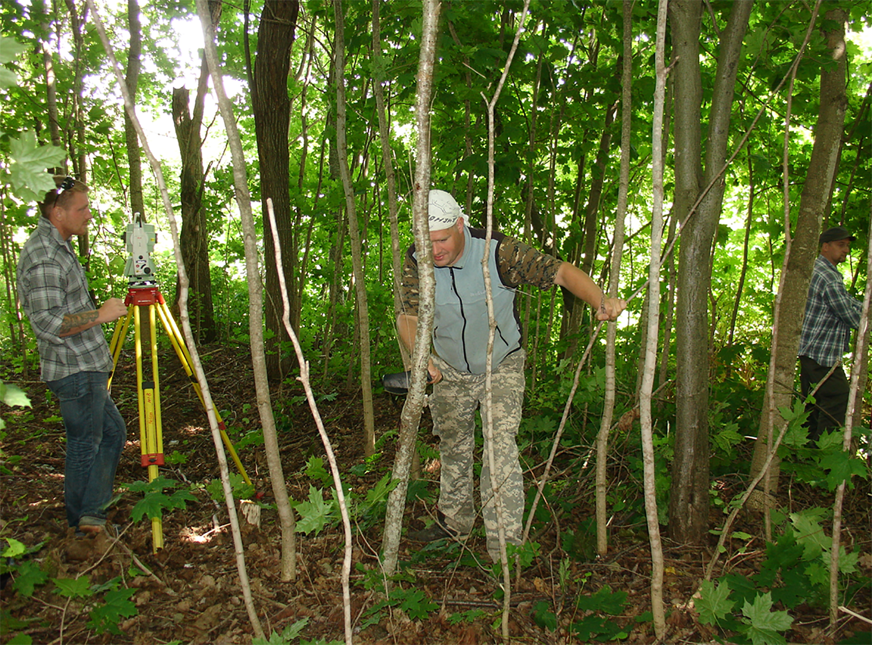Топографическая съёмка древнерусских курганов в сложных условиях густой растительности. Голубково-1, Лужский район, Ленинградская область, 2015 г.