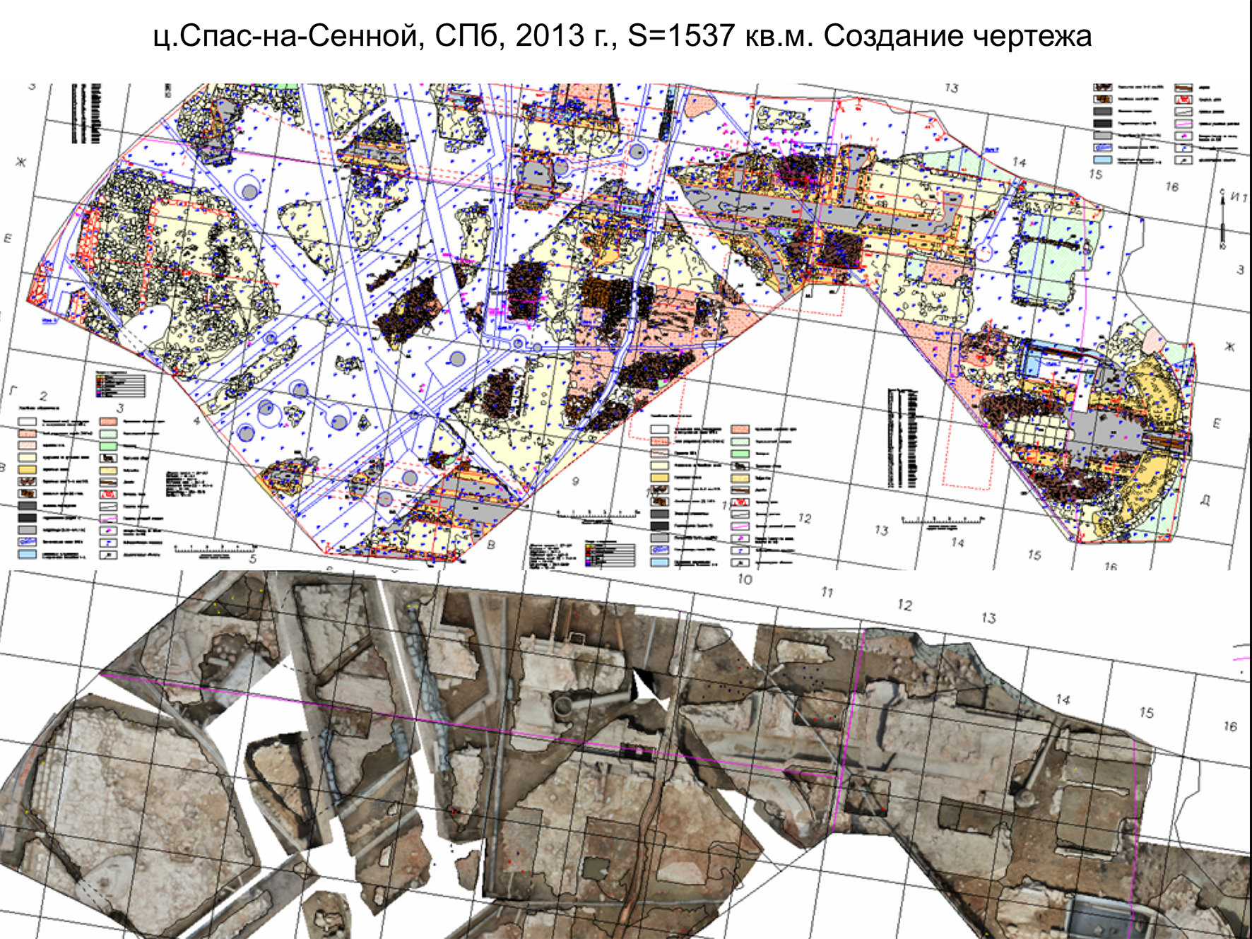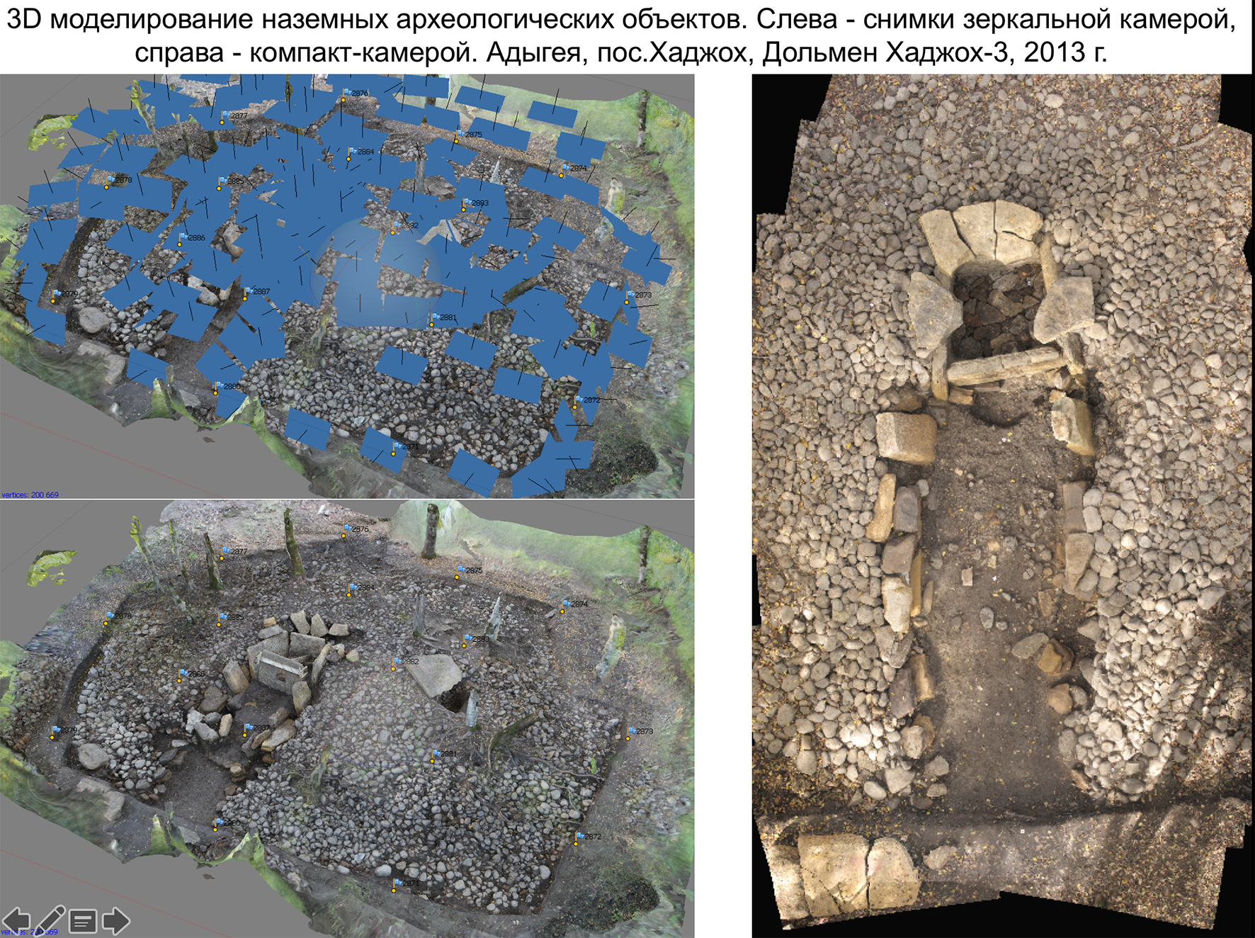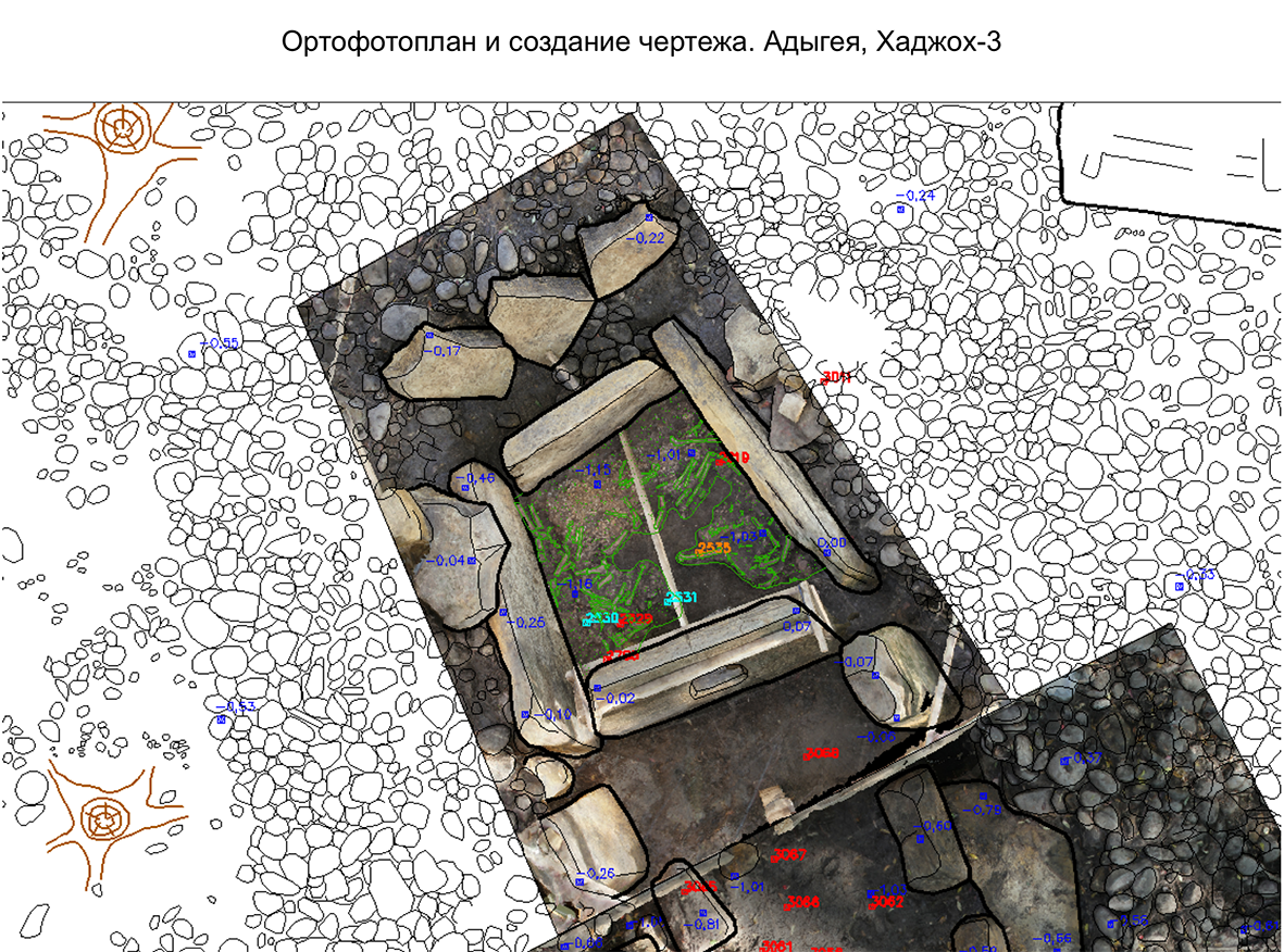 Создание археологического чертежа на основе ортофотоплана, построенного на основе 3D-модели. Церковь Спас-на-Сенной, СПб, 2013 и дольмен Хаджох-3, с. Хаджох, Адыгея, 2013