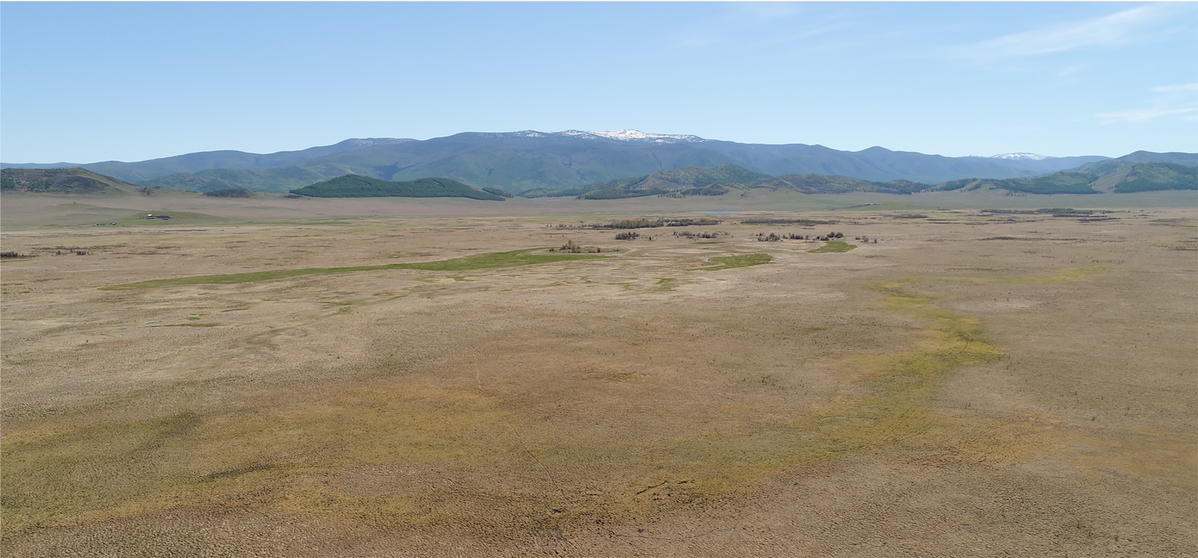 Вид на пойму реки Уюк и место расположения кургана Туннуг 1