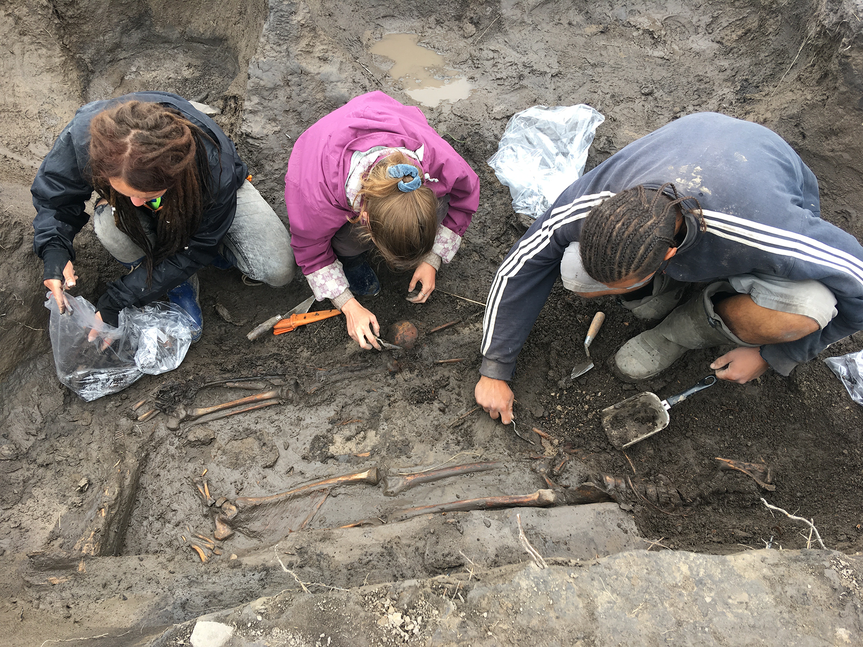 Расчистка двойного погребения кокэльской культуры. 2019 г.