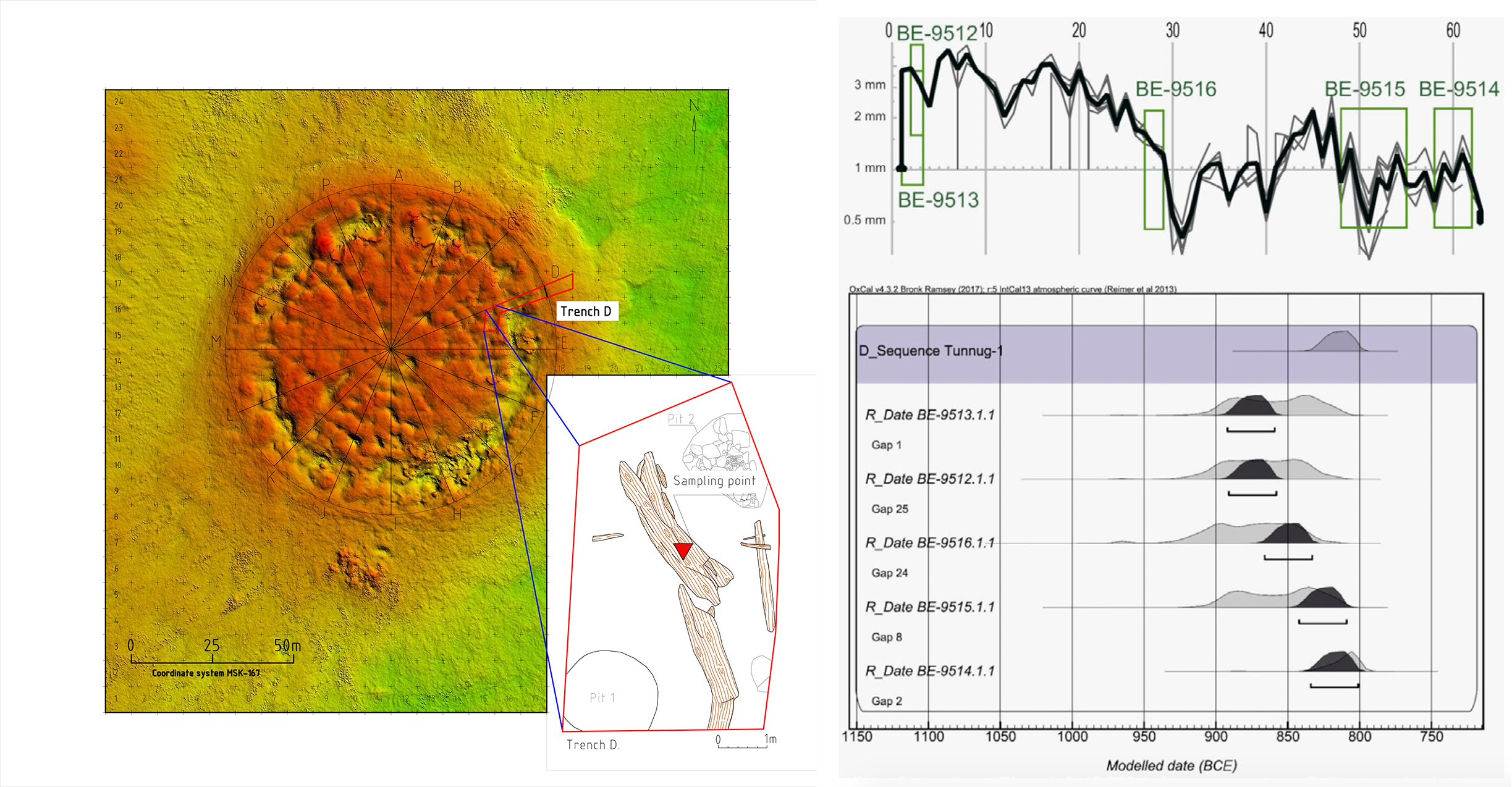 AMS анализ колец из спила ствола лиственницы из основной конструкции кургана. 2018 г.  (по Caspari et al. 2020a)