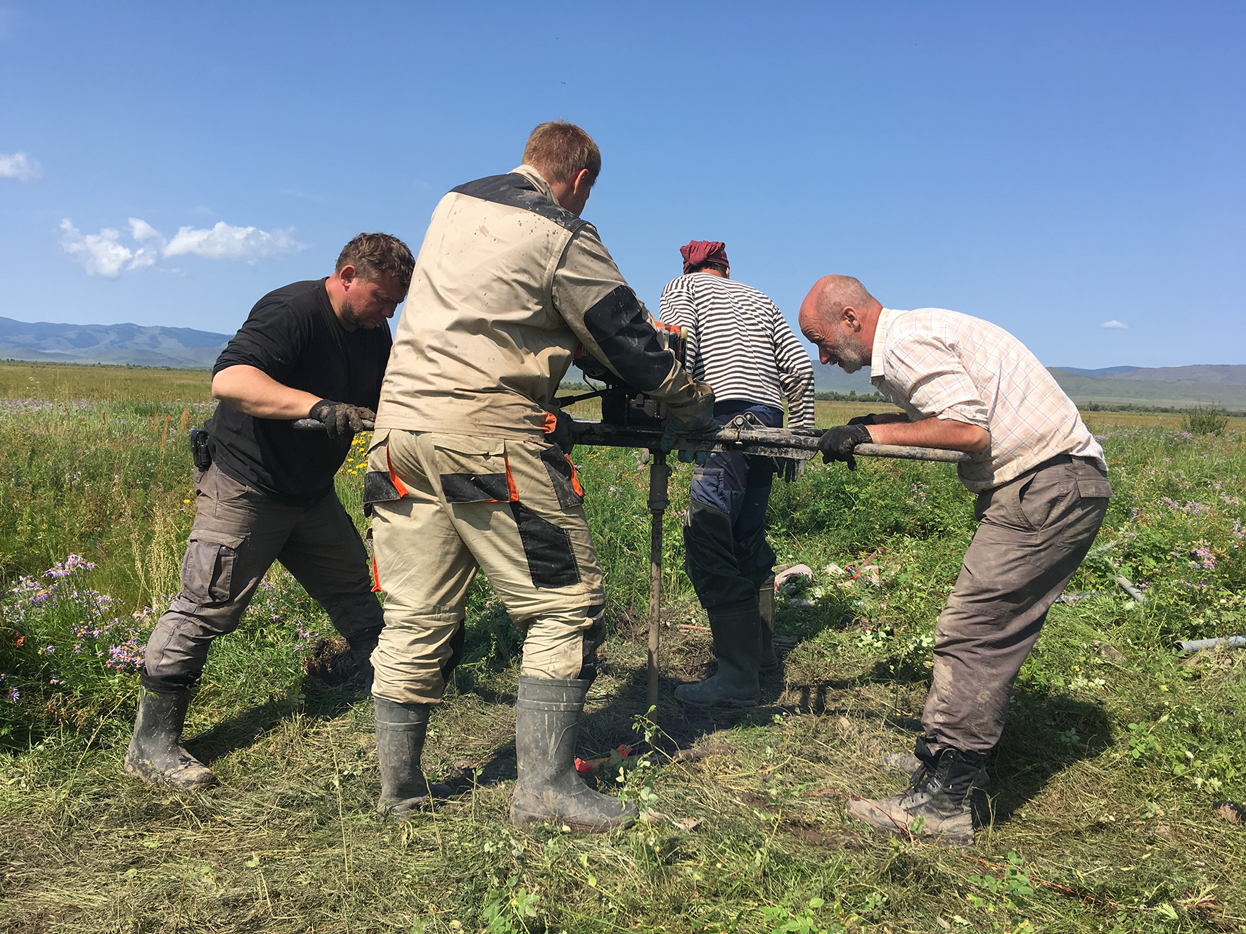 Бурение с целью отбора образцов для почвоведческого анализа. 2019 г.
