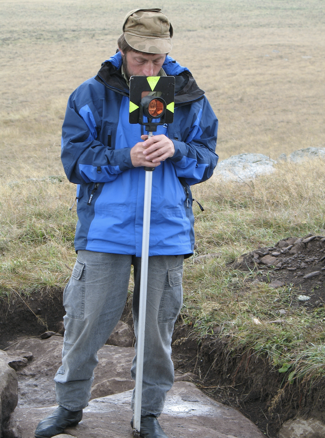 5. Во время проведения раскопок находки фиксируются электронными тахеометрами в трёхмерной системе координат. Также выполняются и архитектурно-археологические обмеры. Используются коды точек, в которые в условном виде заносится информация о характере точек: принадлежность к артефактам или обмерам, номер слоя, обозначение структуры и её номер, материал, тип артефакта.