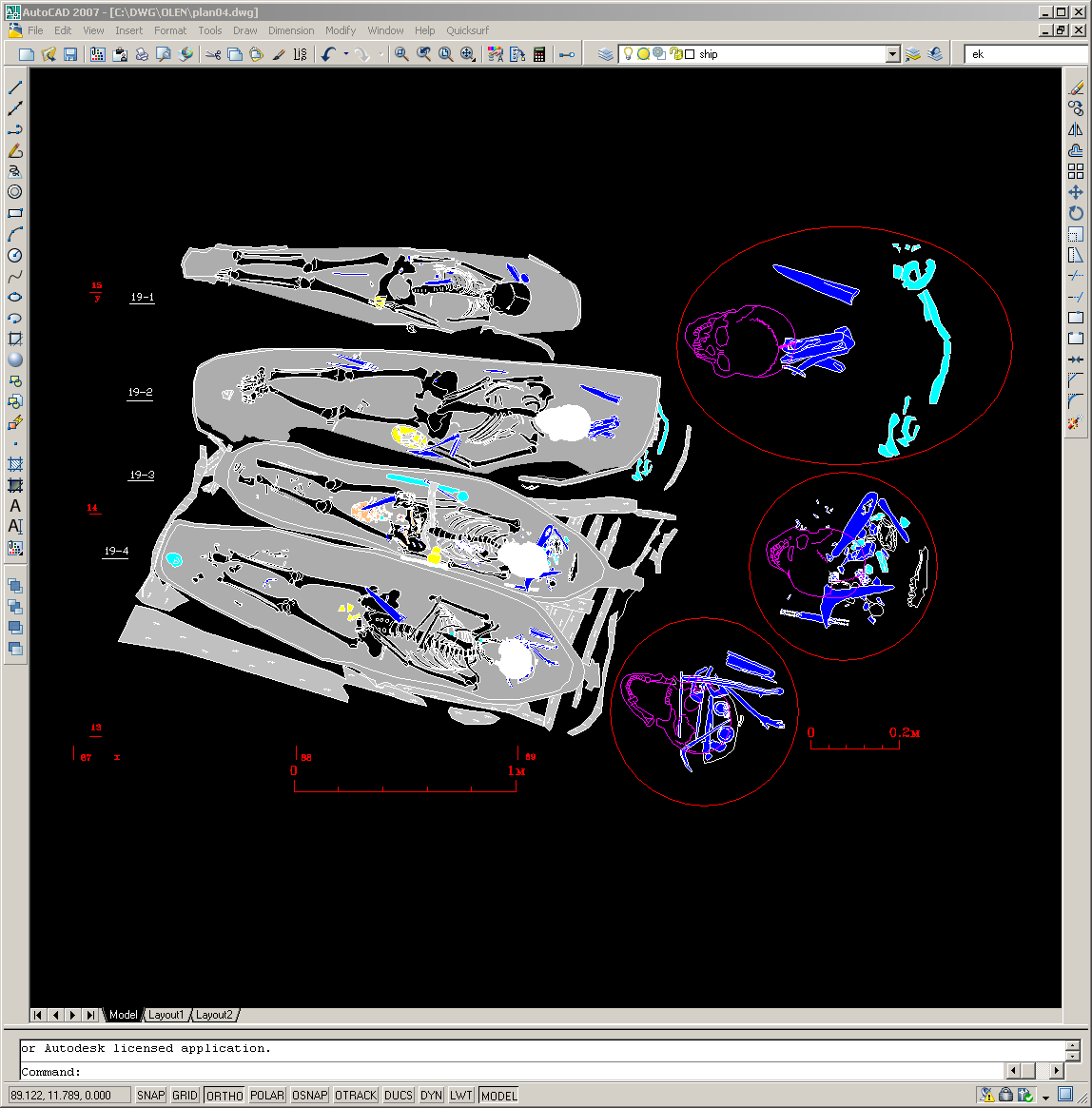 9. Каждый археологический слой вычерчивается в отдельном пакете слоёв AutoCAD.